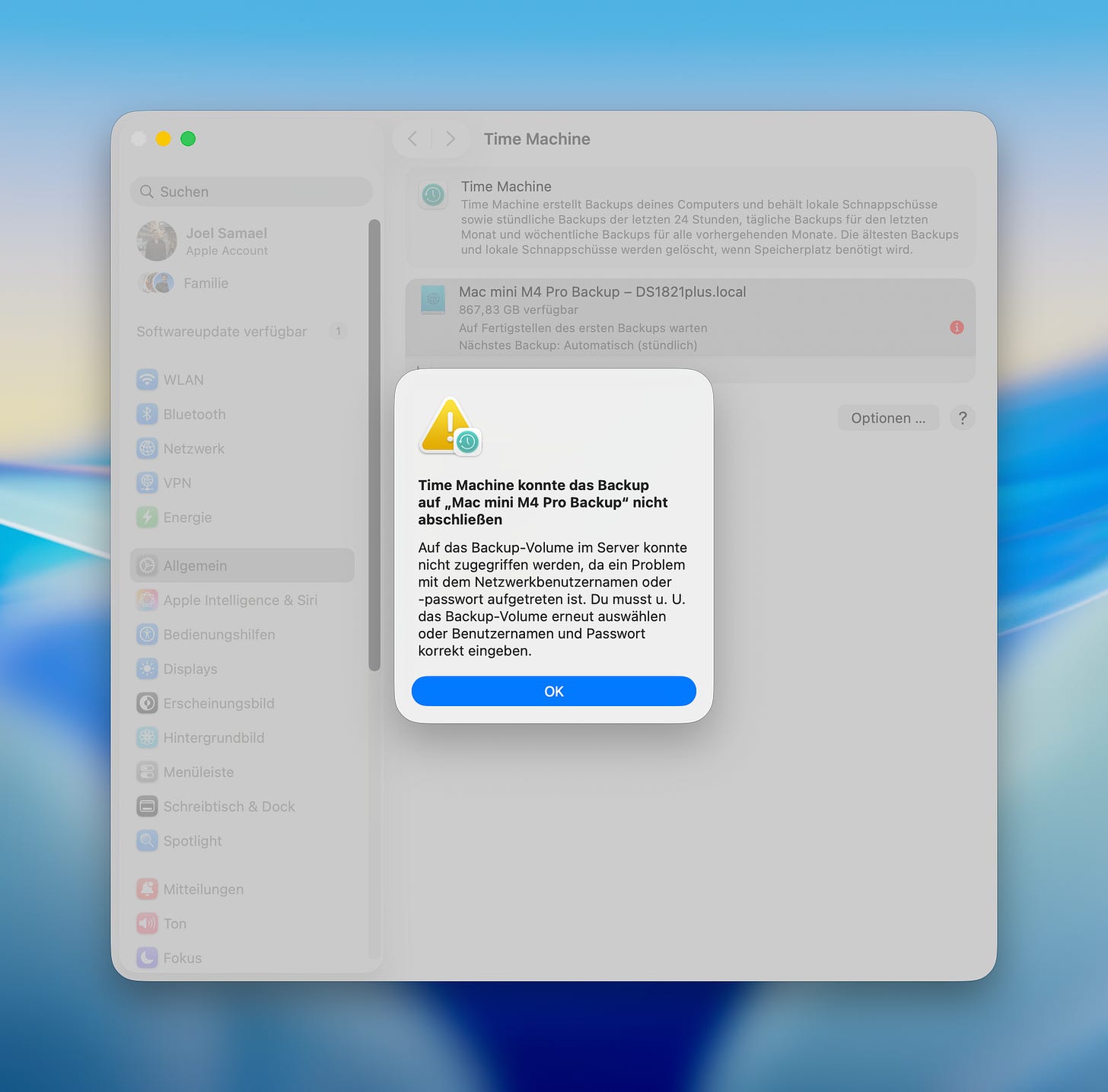 Seit macOS 26.4 bzw. 26.4.1 schlagen Time-Machine-Backups auf NAS-Systemen wie Synology teilweise plötzlich fehl, obwohl die Konfiguration vorher sauber funktioniert hat.