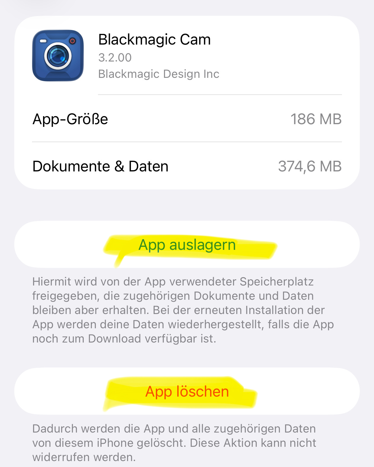 Wichtig ist auch der Unterschied zwischen App löschen und App auslagern.